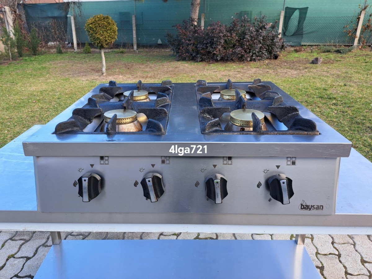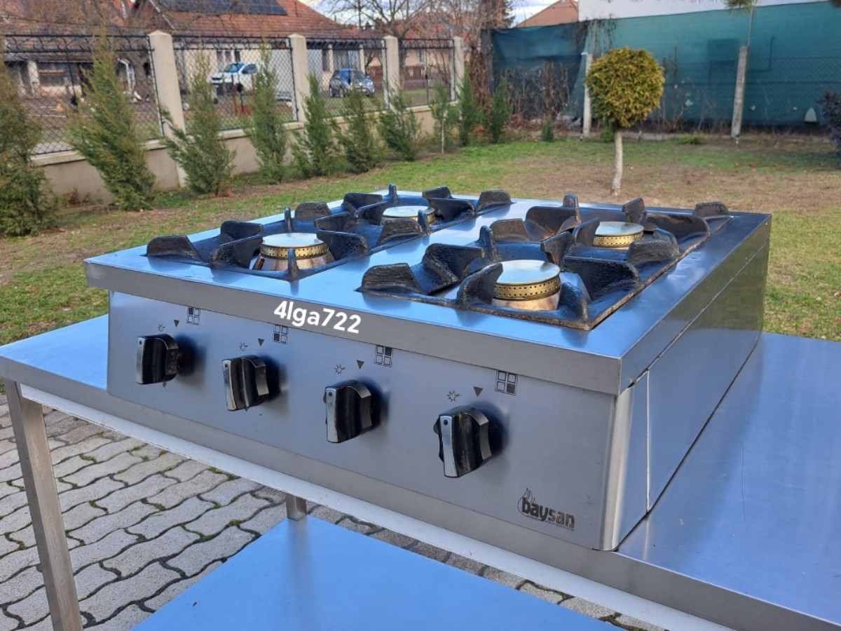 4 égős ipari gáztűzhely – 4lga72 Asztalra helyezhető kivitel Földgázról üzemel 4 db 7 kW égővel Mérete: 80 x 70 x 25 cm Ára: 189.000,- Ft