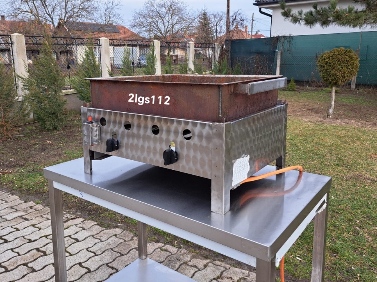 Ipari lángos-, fánk-, hal- és pecsenyesütő – 2lgs11 Kivitel: asztalra tehető Üzemelés: 2 égőfejes, PB gázpalackról Mérete: 65 x 55 x 38 cm Ára: 89.000,- Ft