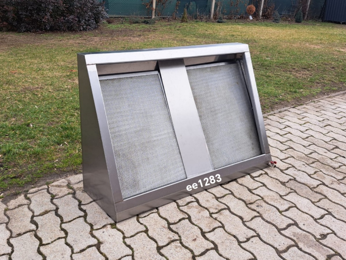 Ipari rozsdamentes elszívóernyő – ee128 2 db labirint szűrővel Motor nélküli Szűrő mérete: 50 x 74 cm Termék mérete: 120 x 40 x 80 cm Ára: 109.000,-Ft