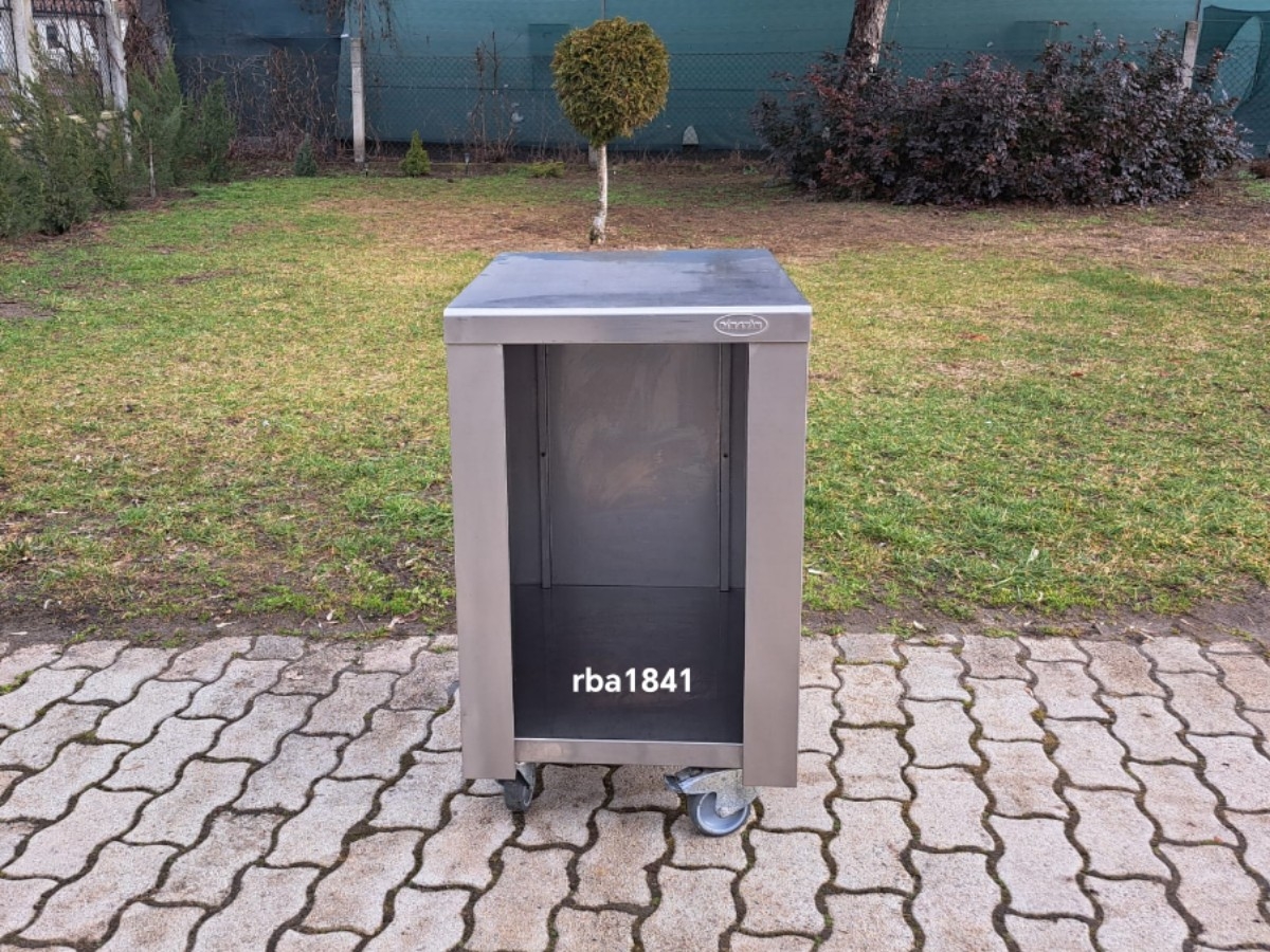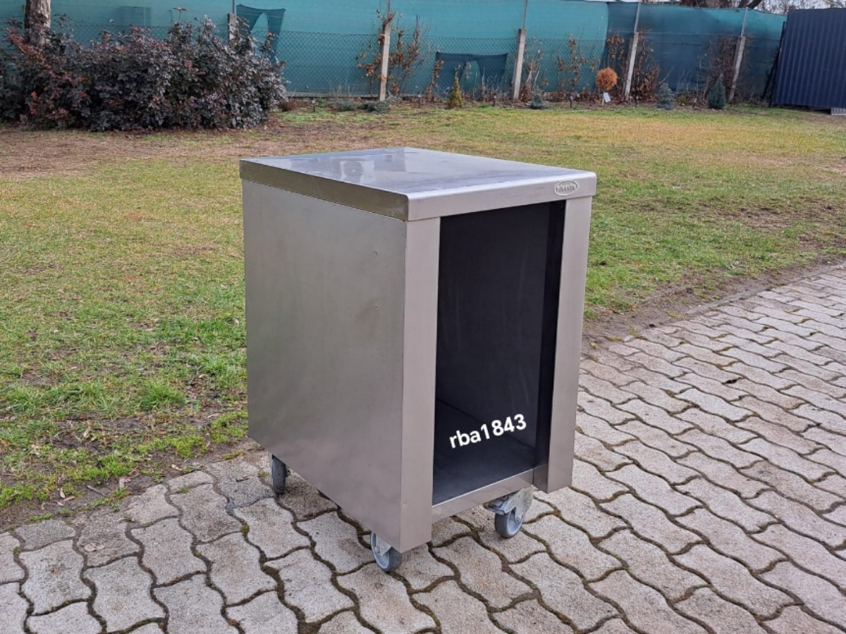 Rozsdamentes asztal alsó polccal – rba184 Erős masszív, körben burkolt Nagy teherbírású, alul tároló polccal 4 db görgővel szerelt, könnyen mozgatható Mérete: 50 x 65 x 87 cm Ára: 69.000,-Ft