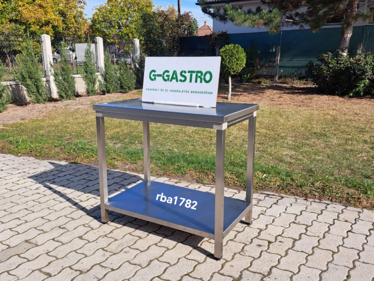 Rozsdamentes asztal alsó polccal – rba178 Erős masszív asztal Állítható lábakkal Mérete: 100 x 60 x 89 cm Ára: 99.000,-Ft