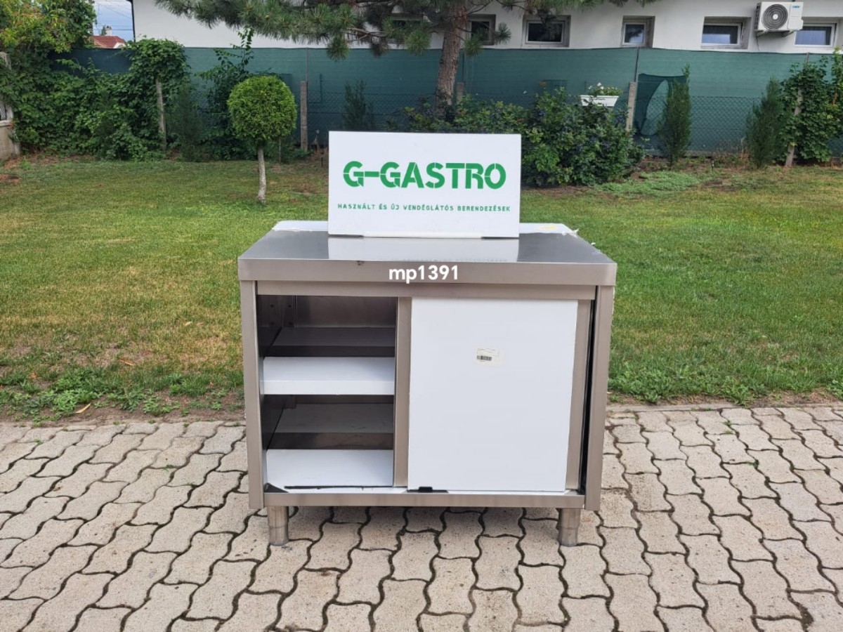 Rozsdamentes munkapult – mp139 Körben burkolt, eltolható ajtóval Középen és alul tároló polccal Szervizünk által átnézett és kipróbált készülék! Mérete: 100 x 70 x 89 cm Ára: 169.000,- Ft