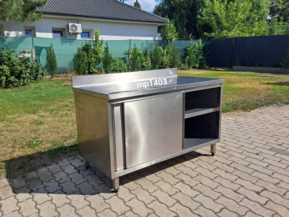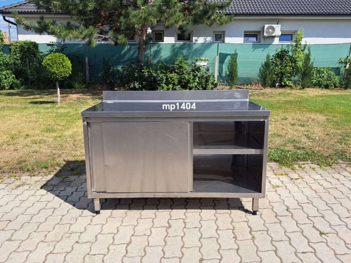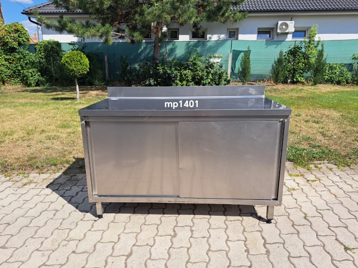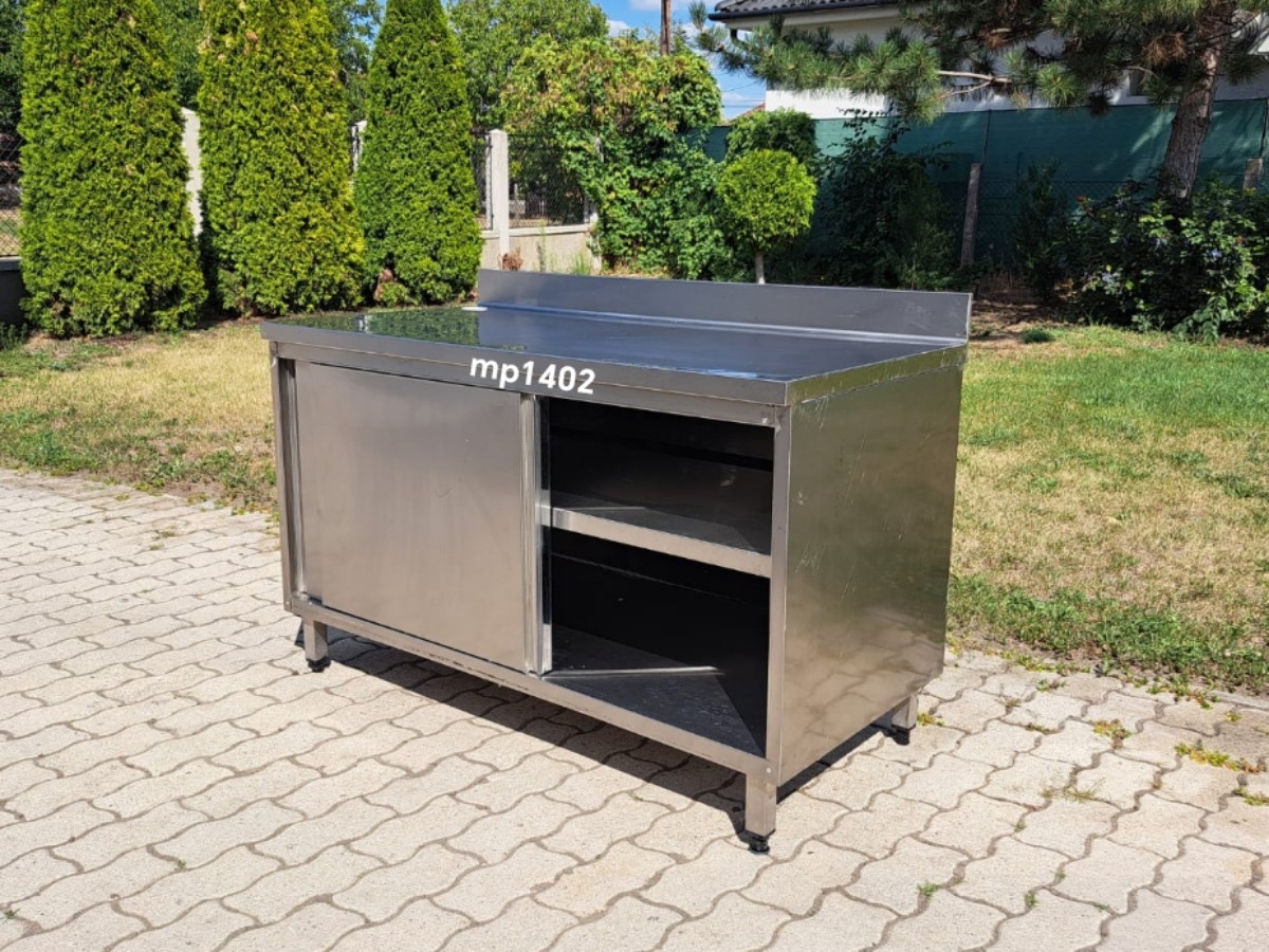 Rozsdamentes munkapult – mp140 Hátsó felhajtással Körben burkolt, eltolható ajtóval Középen és alul tároló polccal Szervizünk által átnézett és kipróbált készülék! Mérete: 140 x 70 x 89 cm Ára: 189.000,- Ft